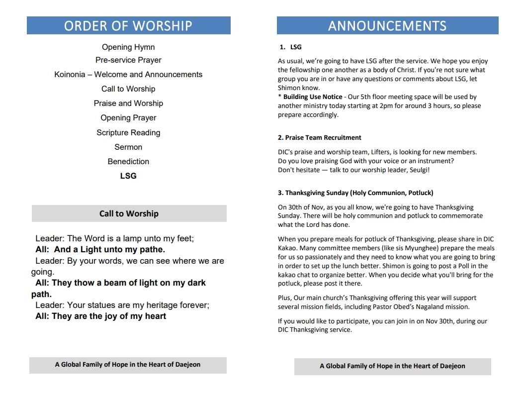 Blood Covenant and Thanks giving luncheon